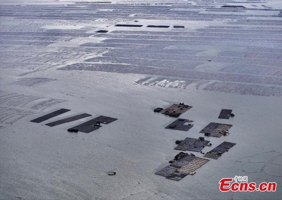 Ocean ranch floats in Dinghai Bay, Lianjiang County, east China's Fujian Province, May 27, 2025. (China News Service/Zhang Bin)