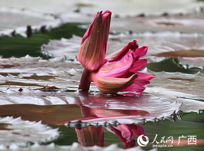A rare "twin-pistil lotus flower," a natural occurrence estimated to happen once in a million blooms, recently blossomed at a lake on the Guangxi University campus in south China's Guangxi Zhuang Autonomous Region. This is the first time such a remarkable flower has been recorded at the university.