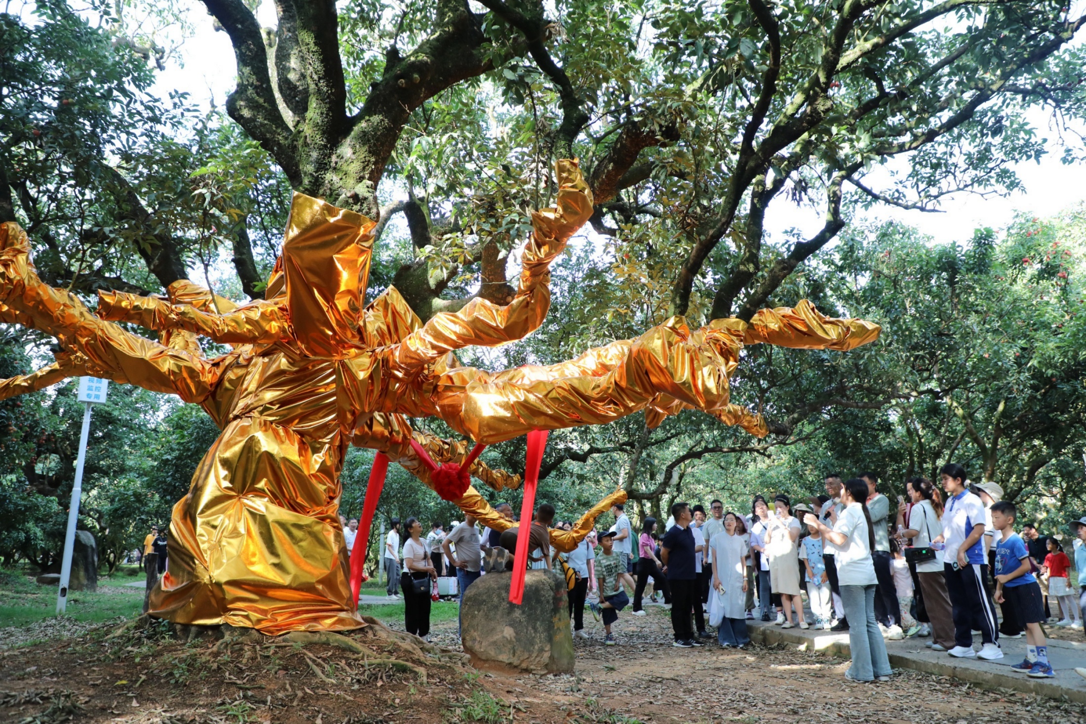 Tourists admire an ancient lychee tree at Gongyuan orchard in Genzi town, Gaozhou city, a county-level city administered by Maoming, south China's Guangdong Province. (Photo/Tu Tianxiang)