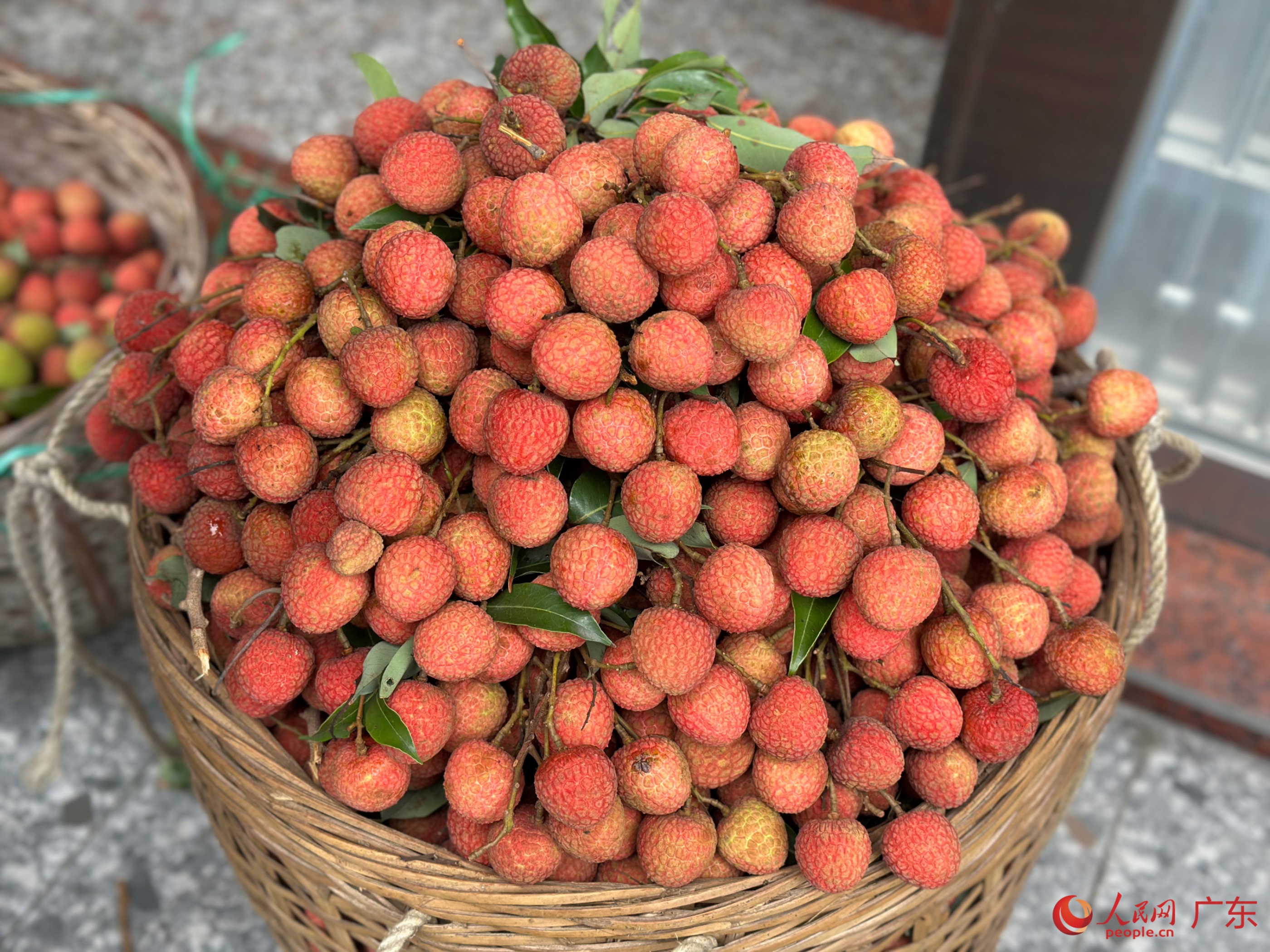 Photo shows a basket of freshly harvested lychees in Gaozhou city, a county-level city administered by Maoming, south China's Guangdong Province. (People's Daily Online/Wang Shaoshao)