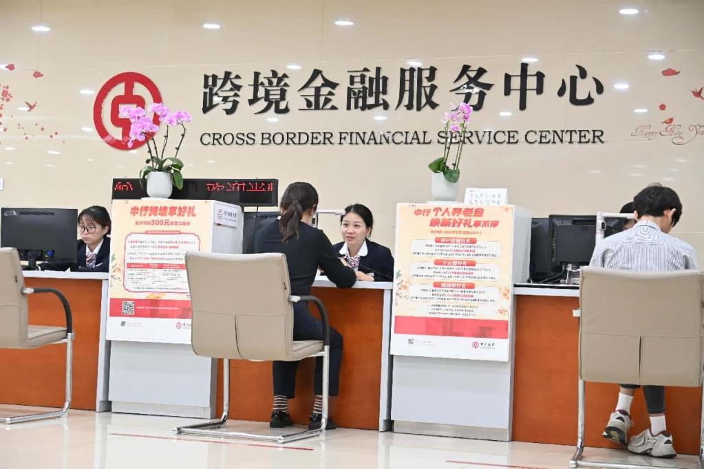 Staff members assist customers at a cross-border financial service center of the Bank of China (BoC) in Shapingba district, southwest China's Chongqing municipality. (Photo by Sun Kaifang/People's Daily Online)