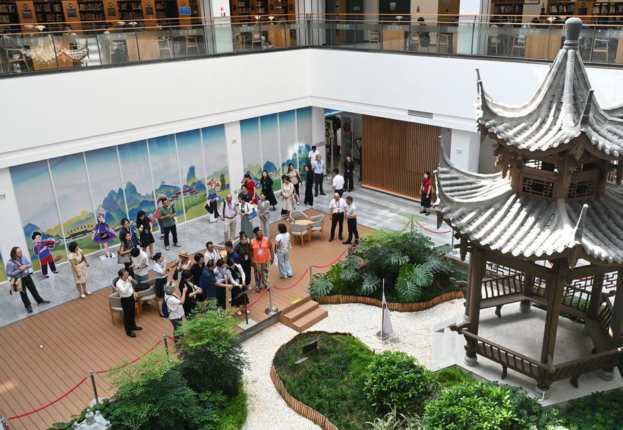 Librarians from China and abroad participating in an exchange program visit Fujian Provincial Library in Fuzhou, southeast China's Fujian Province, June 21, 2025. (Xinhua/Lin Shanchuan)