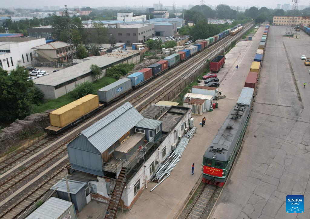 A China-Europe freight train departs from Beijing International Land Port in Fangshan District of Beijing, capital of China, June 30, 2025.
