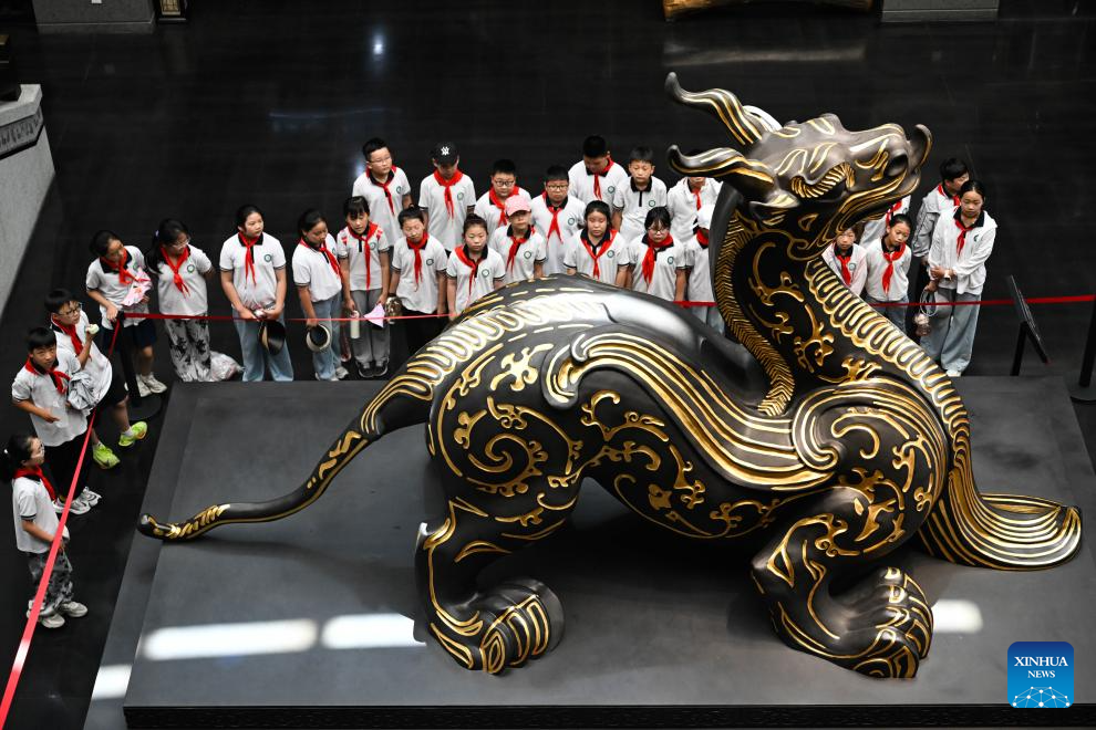 Students visit a museum featuring Han Dynasty (202 BC-220 AD) tombs to spend their summer time in Xuyi, east China's Jiangsu Province, July 2, 2025. The museum of Han king's mausoleum at Dayun Mountain in Xuyi stages several featured exhibitions in this summer holiday to attract people to visit and learn about history knowledge. (Xinhua/Ji Chunpeng)