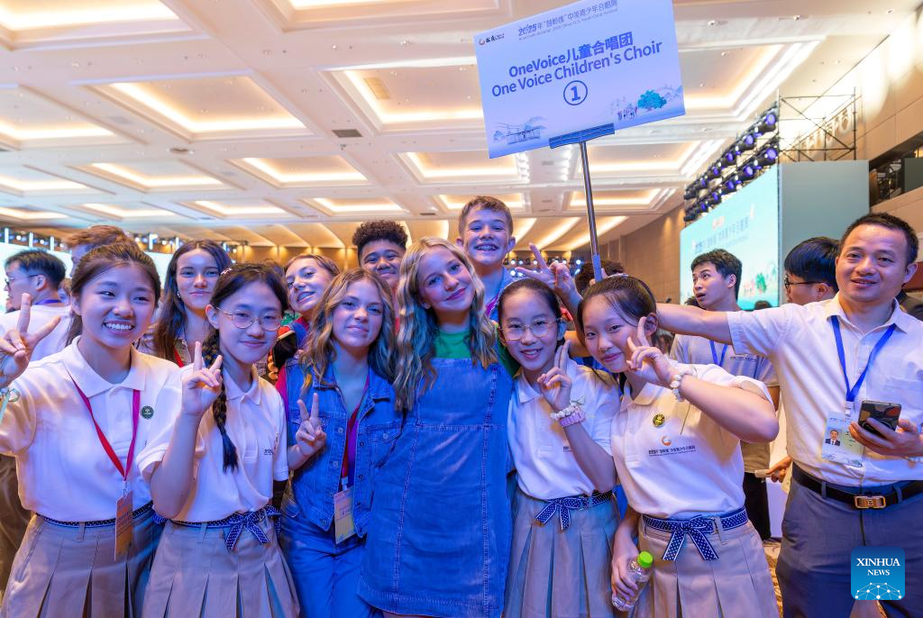 Youths from China and the United States sing during the opening ceremony of Bond with Kuliang: 2025 China-U.S. Youth Choir Festival, in Fuzhou, southeast China's Fujian Province, July 10, 2025. Bond with Kuliang: 2025 China-U.S. Youth Choir Festival, with the theme of "Singing for Peace", kicked off here on Thursday.