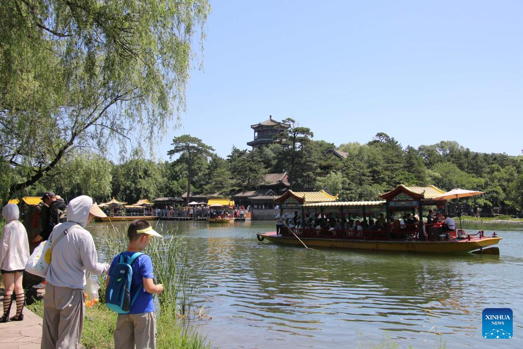 People visit the Imperial Summer Resort in Chengde, north China's Hebei Province, July 13, 2025. With heatwaves hitting some Chinese provinces and regions in recent days, the scorching temperature has fueled a cooling economy boom. (Photo by Liu Huanyu/Xinhua)