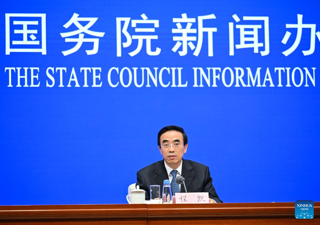 Cheng Kai, chairman of the China Disabled Persons' Federation, answers questions during a press conference held by the State Council Information Office (SCIO) in Beijing, capital of China, July 22, 2025. The State Council Information Office held a press conference on the achievements in developing the cause of people with disabilities during the 14th Five-Year Plan period (2021-2025) in Beijing on Tuesday. (Xinhua/Chen Yehua)