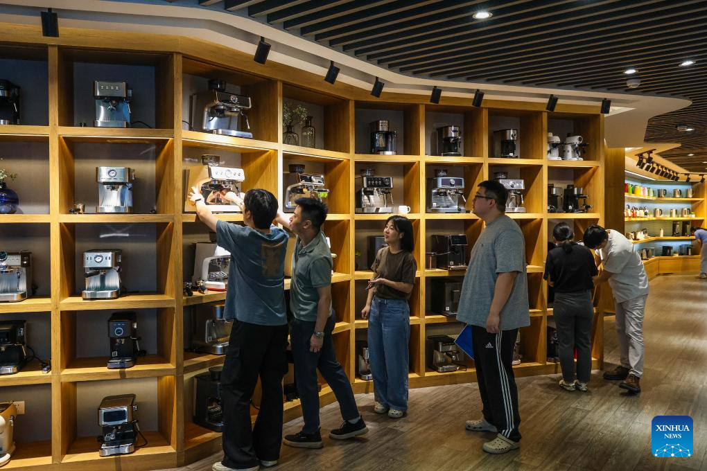 Guangdong Xinbao Electric Appliances Holdings Co., Ltd., based in Shunde City, stands as a leading player in China's small appliance sector. For every 100 drip coffee makers sold globally, about 40 are produced by the company. Launching over 1,000 new products each year, the company attributes its continuously growing export capabilities to its commitment to independent research and innovative design. In 2024, Xinbao produced over 150 million small appliances, generating overseas revenues exceeding 13 billion yuan (about 1.81 billion U.S. dollars). (Xinhua/Liu Dawei)