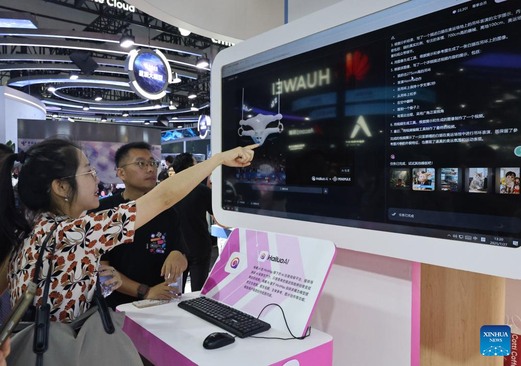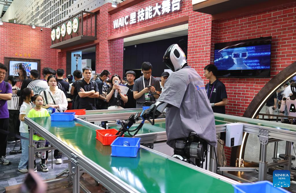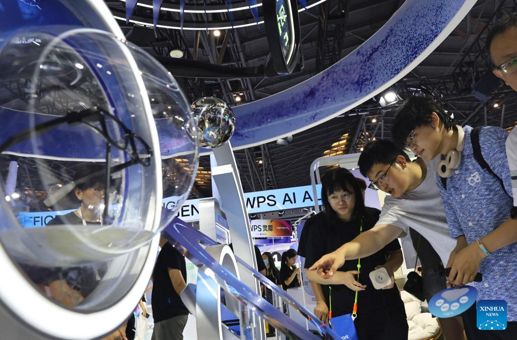 The ongoing 2025 World AI Conference showcases the world's latest AI advancements while providing a platform for visitors to access AI products and technologies. (Xinhua/Fang Zhe)