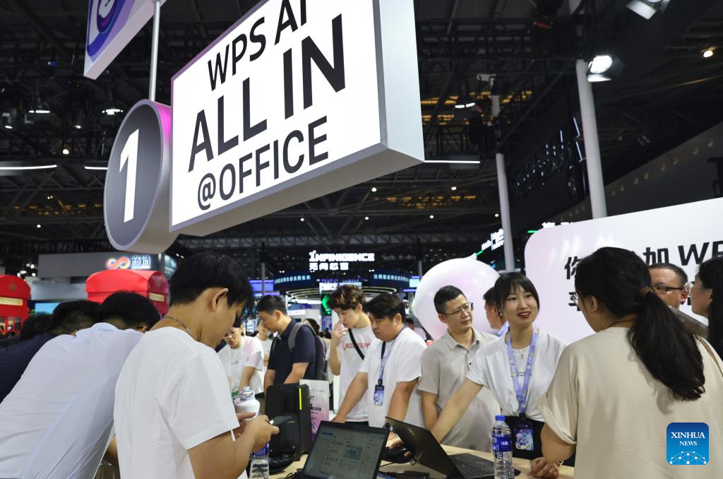 Visitors try the WPS Office AI system at the 2025 World AI Conference in east China's Shanghai, July 27, 2025.