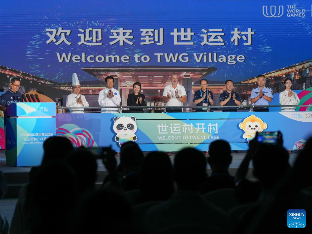 Photo taken on Aug. 3, 2025 shows the opening ceremony of the TWG village for The World Games (TWG) 2025 Chengdu in Chengdu, southwest China's Sichuan Province. (Xinhua/Wang Xi)