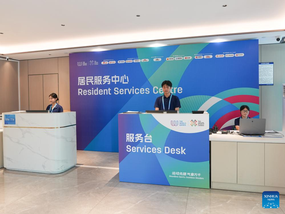 Photo taken on Aug. 3, 2025 shows the resident services centre in the TWG village for The World Games (TWG) 2025 Chengdu in Chengdu, southwest China's Sichuan Province. (Xinhua/Wang Xi)