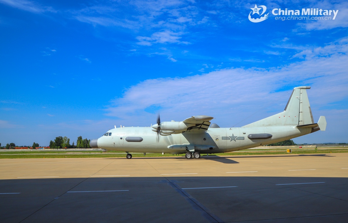 A reconnaissance aircraft attached to an aviation unit under the Chinese PLA Navy taxis on the runway during a round-the-clock flight training exercise held recently. (eng.chinamil.com.cn/Photo by Wang Shuo and Wu Zhiyang)