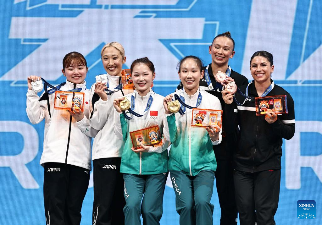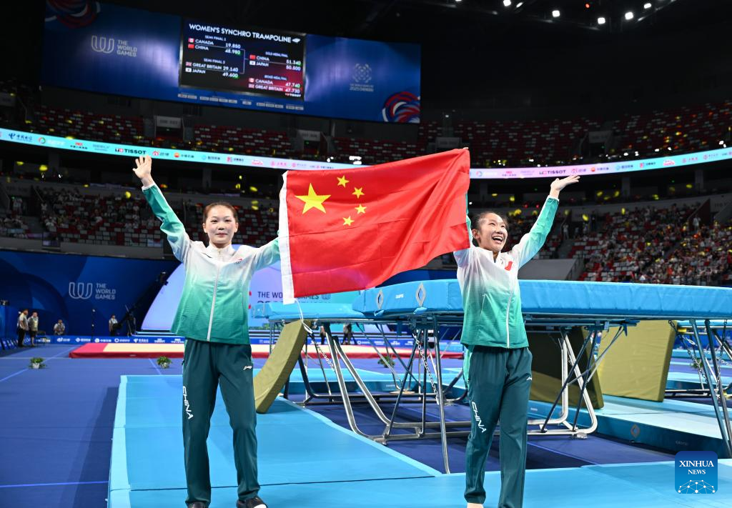 CHENGDU, Aug. 10 (Xinhua) -- The trampoline gymnastics competitions at the 2025 World Games concluded Sunday night at the Dong'an Lake Sports Park Multifunctional Gymnasium, with China claiming gold in the women's synchronized event.