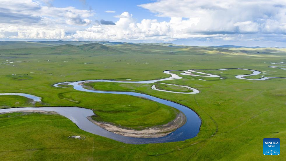 A drone photo taken on Aug. 19, 2025 shows the scenery along the Mergel Gol River in Hulun Buir, north China's Inner Mongolia Autonomous Region. (Xinhua/Ma Jinrui)