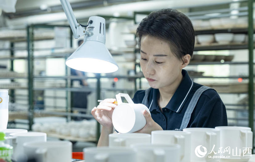 An artisan trims a clay piece in the workshop of a company in Bayi town, Shangdang district, Changzhi city, north China's Shanxi Province. (People's Daily Online/Lu Pengyu)