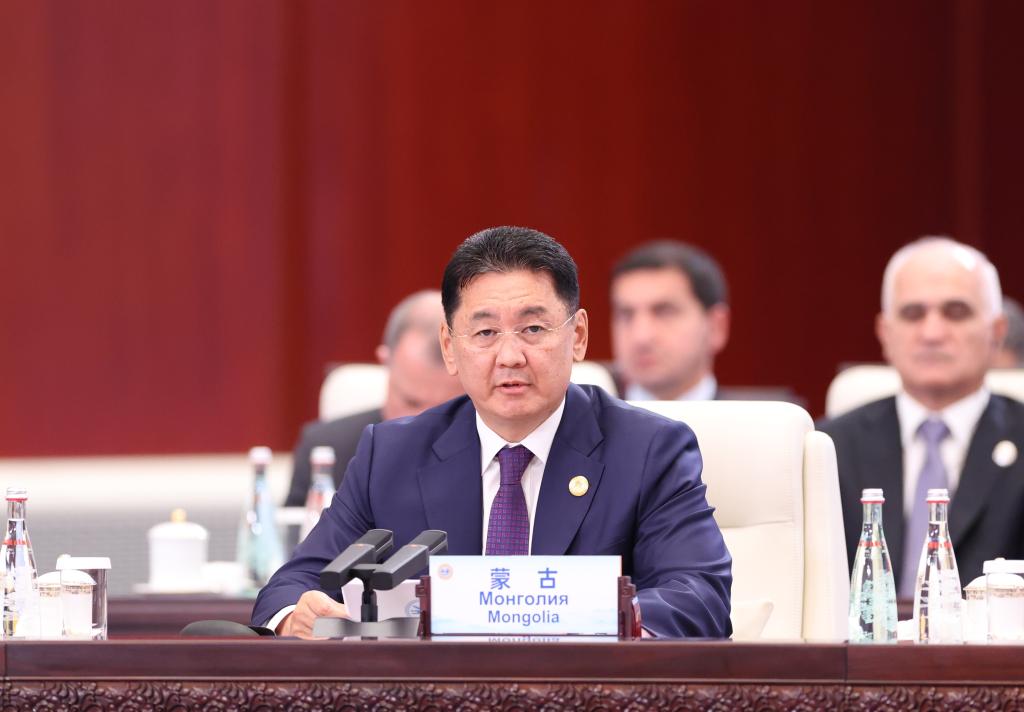 Mongolian President Ukhnaa Khurelsukh attends the "Shanghai Cooperation Organization (SCO) Plus" Meeting in Tianjin, north China, Sept. 1, 2025. The Shanghai Cooperation Organization (SCO) convened the "SCO Plus" Meeting on Monday afternoon in north China's port city of Tianjin. (Xinhua/Huang Jingwen)