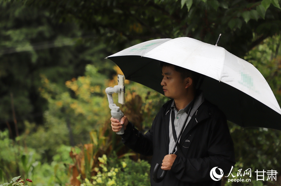 Wang Chao promotes his B&B during a live-streaming session in Liziba village, Tielou Tibetan Township, Wenxian county, Longnan city, northwest China's Gansu Province. (People's Daily Online/Shao Lan)