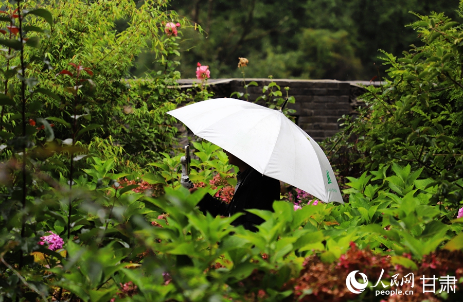 Photo shows blooming flowers at the entrance of a B&B in Liziba village, Tielou Tibetan Township, Wenxian county, Longnan city, northwest China's Gansu Province. (People's Daily Online/Shao Lan)