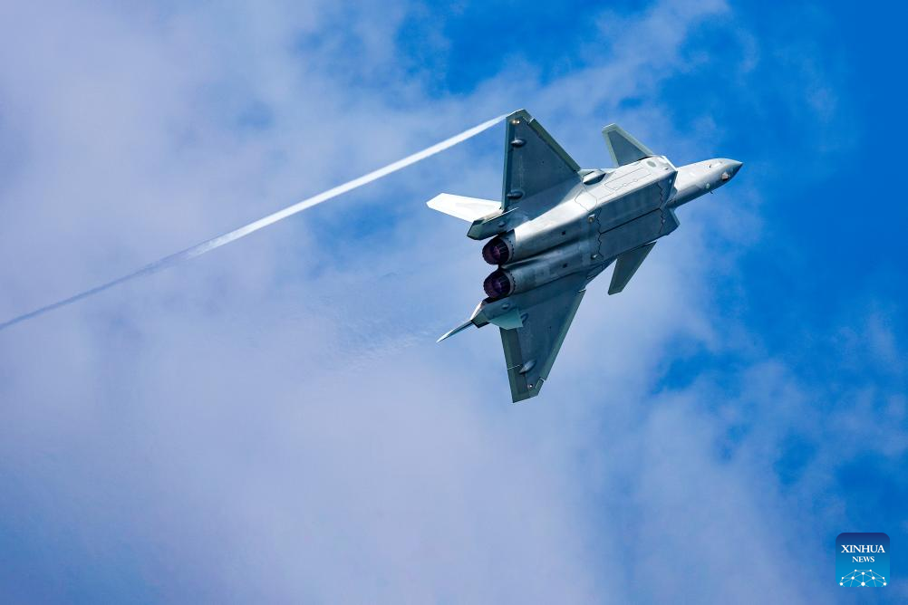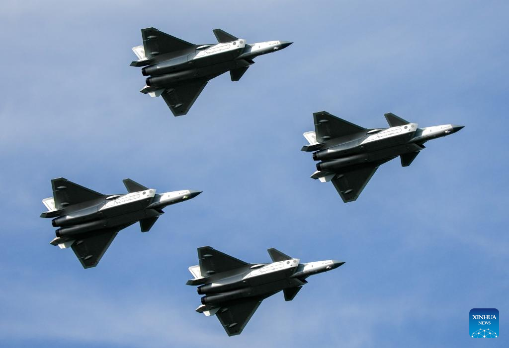 J-20 fighter jets are pictured during the 2025 aviation open-day activities of the Chinese People's Liberation Army Air Force and Changchun Air Show in Changchun, northeast China's Jilin Province, Sept. 19, 2025. The events kicked off here on Friday. (Xinhua/Yan Linyun)