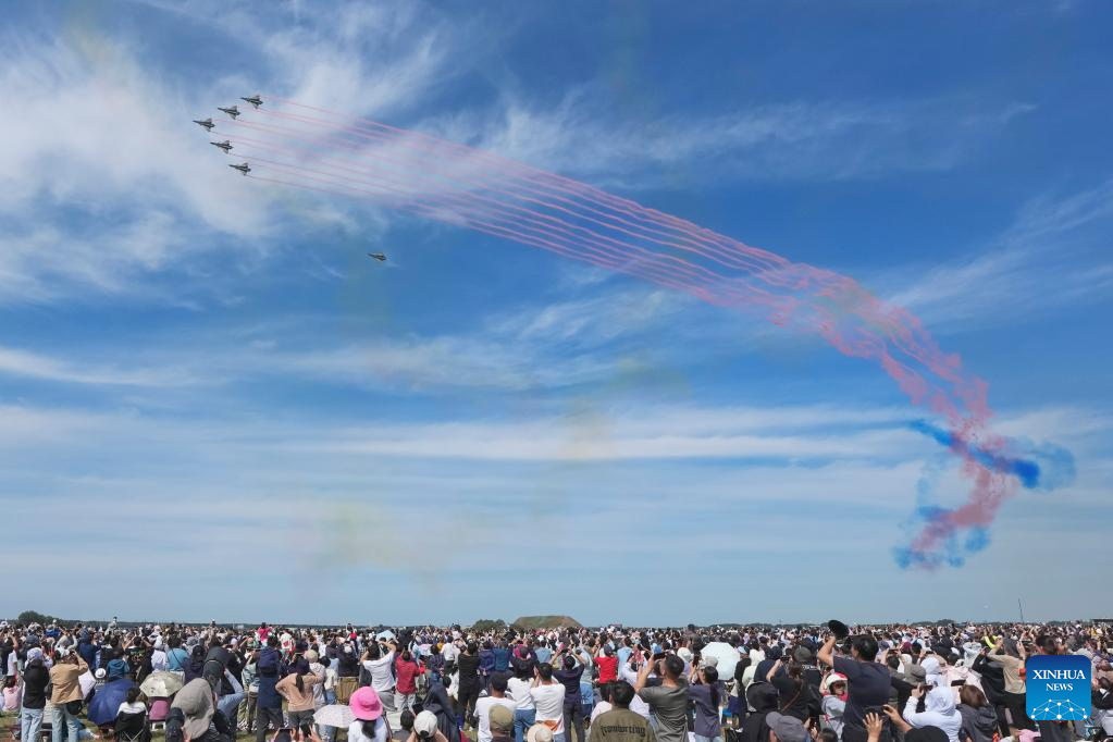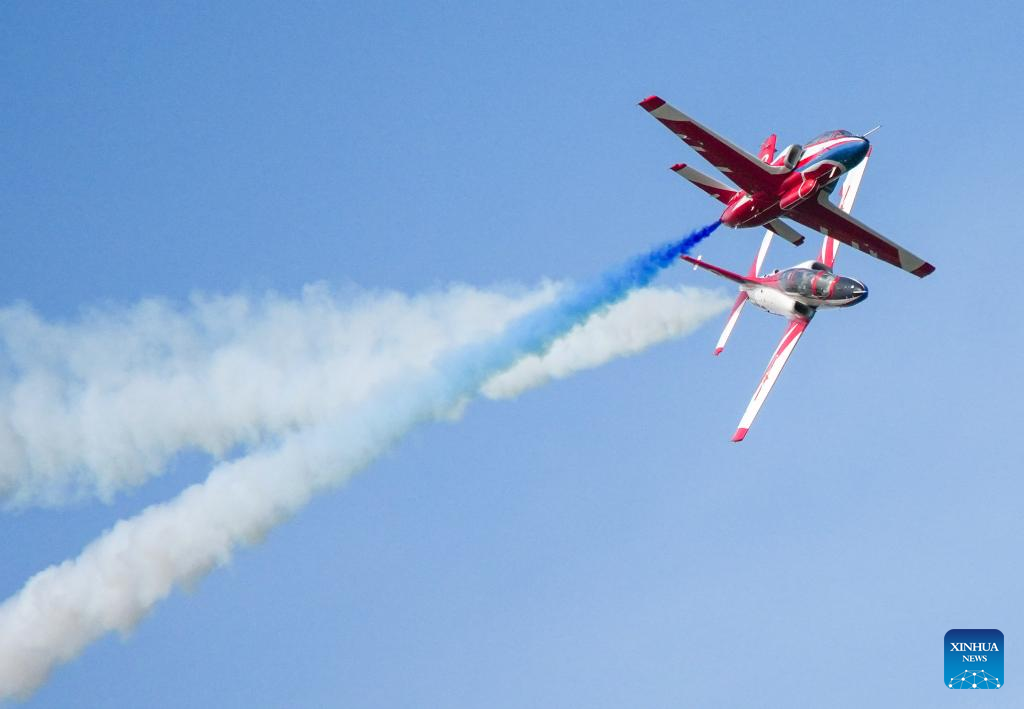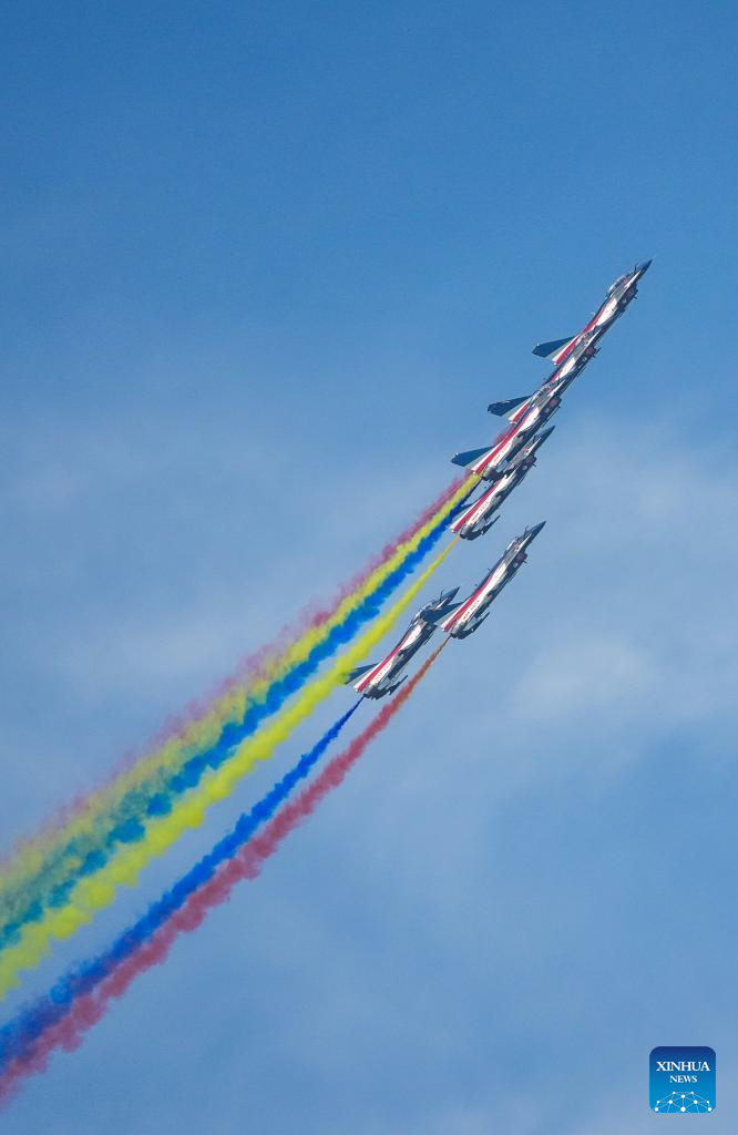 Aircraft of the Bayi Aerobatic Team of the Chinese People's Liberation Army Air Force perform during the 2025 aviation open-day activities of the Chinese People's Liberation Army Air Force and Changchun Air Show in Changchun, northeast China's Jilin Province, Sept. 19, 2025. The events kicked off here on Friday. (Xinhua/Tang Chengzhuo)