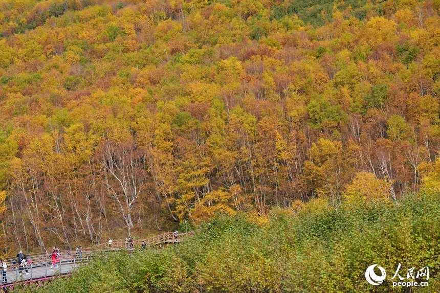 Photo taken on Sept. 22, 2025, shows the beautiful autumn scenery of the Changbai Mountain scenic area in northeast China's Jilin Province. (People's Daily Online/Li Yang)