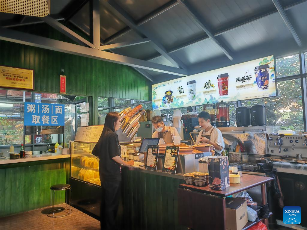 Inside a shop of the First Affiliated Hospital of Guizhou University of Traditional Chinese Medicine in southwest China's Guizhou Province, inventive beverages like Longan lattes and coffee infused with tangerine peels stand out. Developed by a team of TCM practitioners and pharmacists, these drinks manage to balance herbal efficacy with modern tastes.