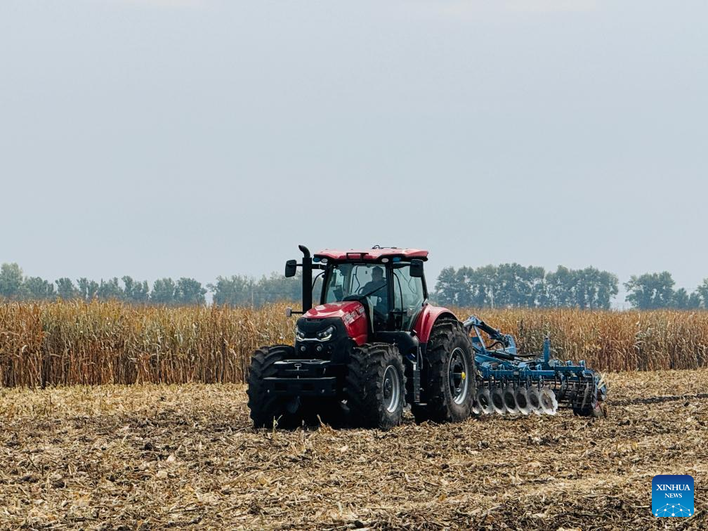 A tractor produced by the Case New Holland (CNH) works in a field in Shuangcheng District of Harbin, northeast China's Heilongjiang Province, Oct. 14, 2025. (Xinhua/Sun Xiaoyu)