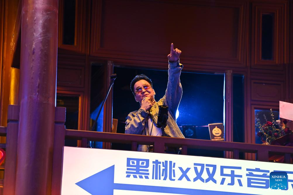 A singer performs at Zhonglou Street in Taiyuan, north China's Shanxi Province, Oct. 29, 2025. (Xinhua/Yang Chenguang)