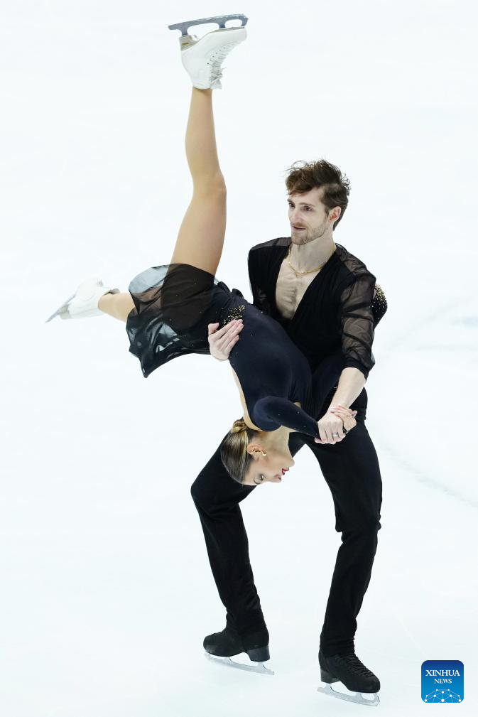Sara Conti (L)/Niccolo Macii of Italy perform during the pairs skating short program at ISU Figure Skating Grand Prix 2025 in Osaka, Japan, Nov. 7, 2025. (Xinhua/Jia Haocheng)