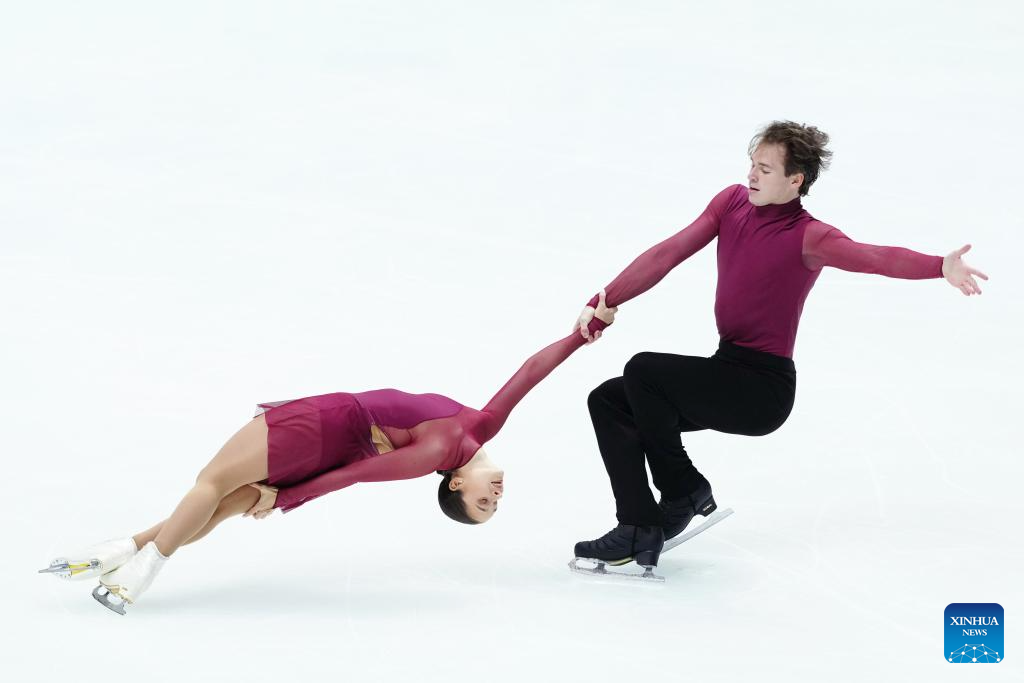 Maria Pavlova (L)/Alexei Sviatchenko of Hungary perform during the pairs skating short program at ISU Figure Skating Grand Prix 2025 in Osaka, Japan, Nov. 7, 2025. (Xinhua/Jia Haocheng)