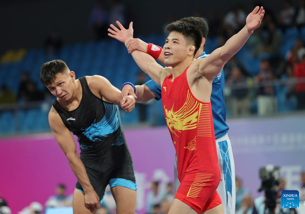 Lu Feng claims National Games's title in men's freestyle 74kg of wrestling
