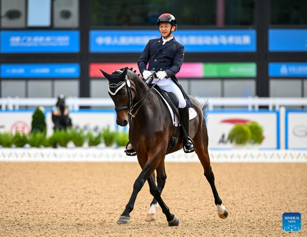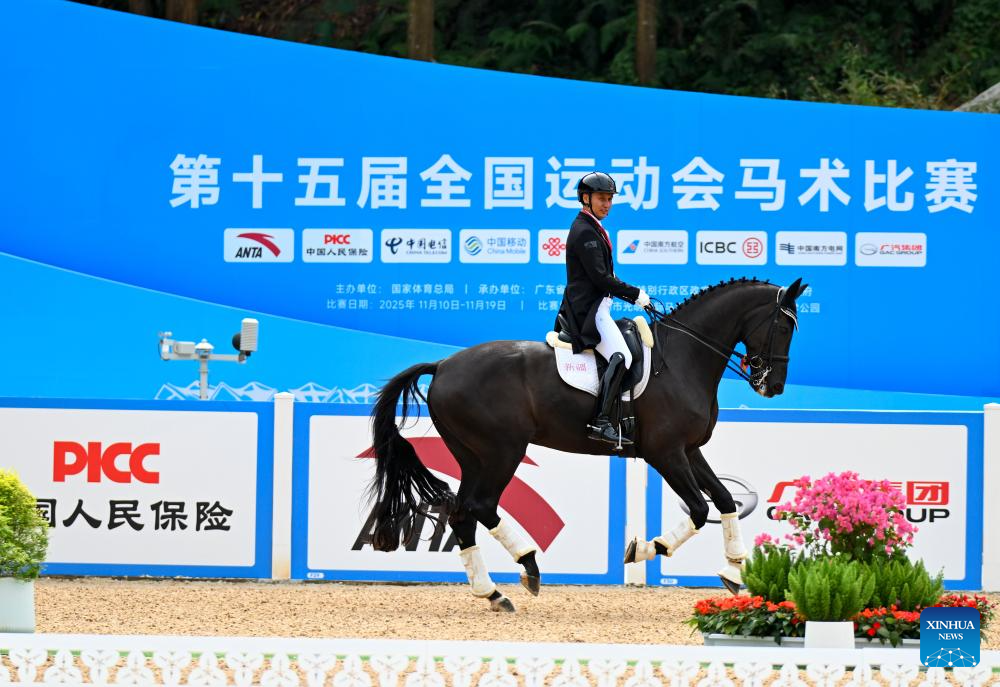 Gu Bing of Guangdong competes during the equestrian dressage individual final at China's 15th National Games in Shenzhen, south China's Guangdong Province, Nov. 12, 2025. (Xinhua/Feng Kaihua)