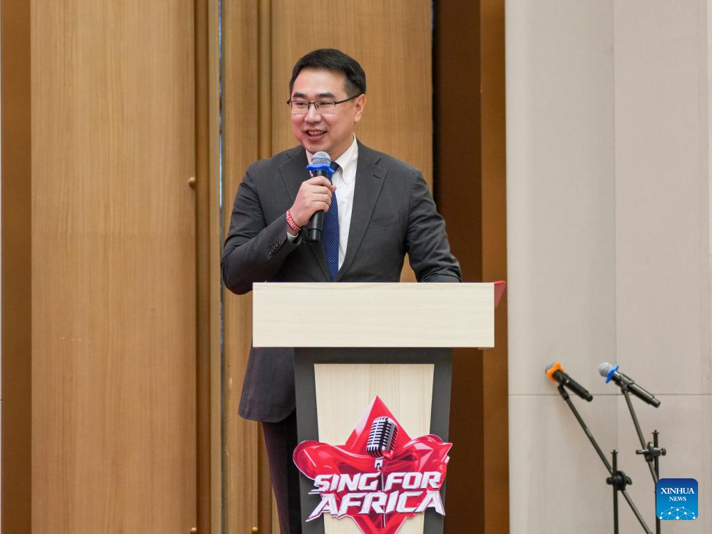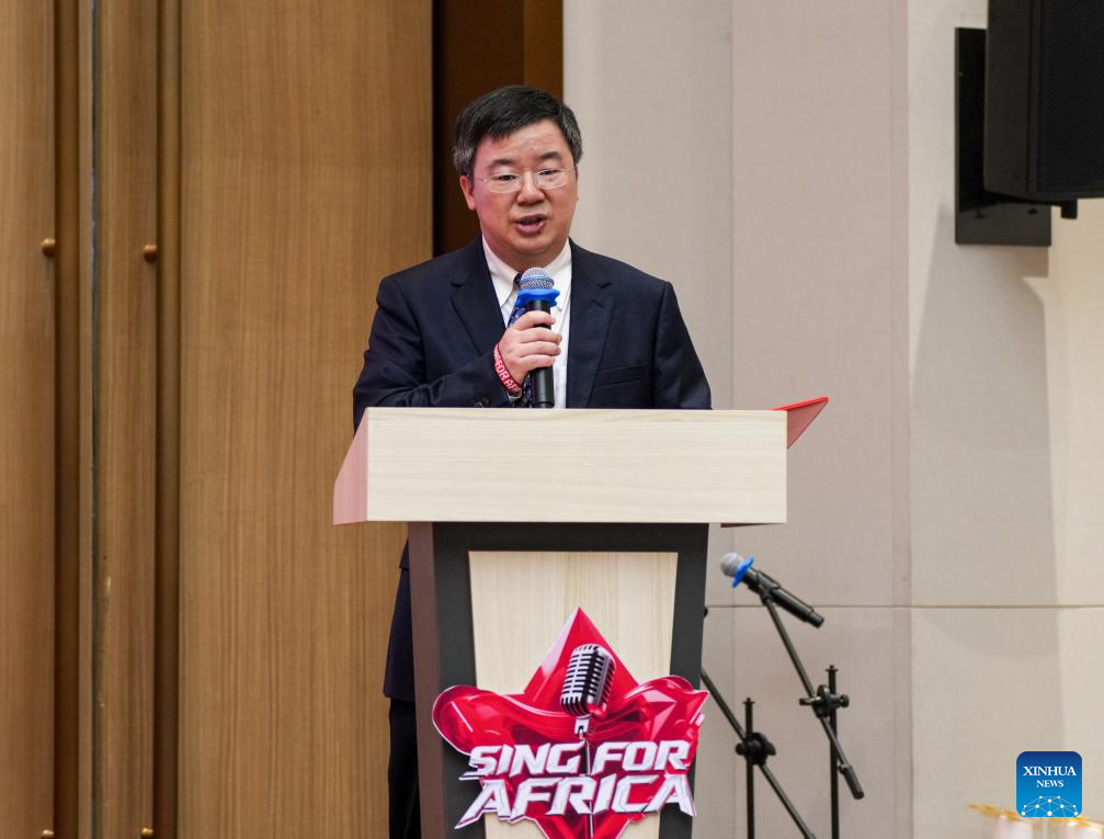 Zhang Zhizhong, minister counselor of the Chinese Embassy in Kenya, speaks during the launching ceremony of the musical talent show "Sing for Africa" in Nairobi, Kenya, on Nov. 11, 2025. (Xinhua/Li Yahui)