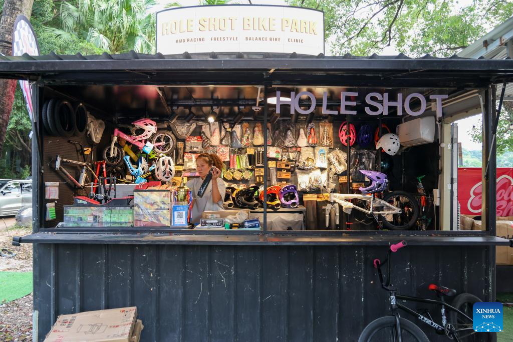Wong Wan Yiu works at a bike park in Shenzhen, south China's Guangdong Province, Oct. 31, 2025. (Xinhua/Liang Xu)