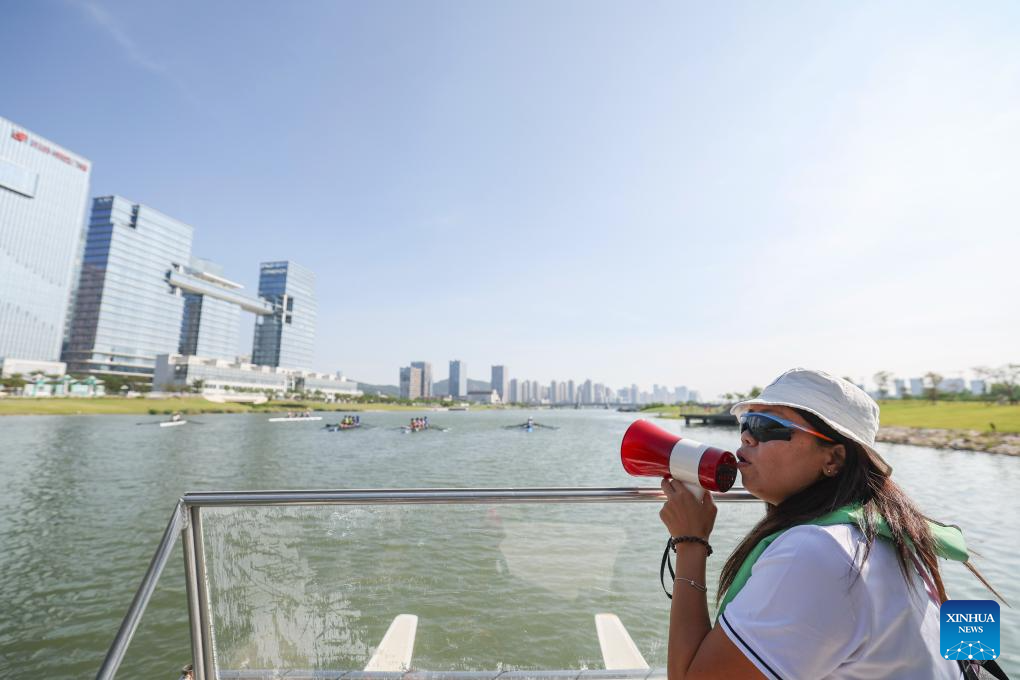 Trainees exercise rowing on the Tianmu River in Hengqin, south China's Guangdong Province, Nov. 1, 2025. (Xinhua/Hu Xingyu)