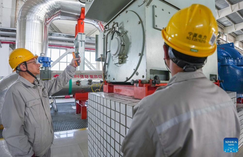 Staff members inspect heating facilities at a heating service company in Yinchuan City, northwest China's Ningxia Hui Autonomous Region, Nov. 18, 2025. Affected by the cold air, the local heating department has implemented measures such as precise regulation of the heating network and comprehensive pipeline inspections to ensure residents stay warm during the winter. (Xinhua/Yang Zhisen)