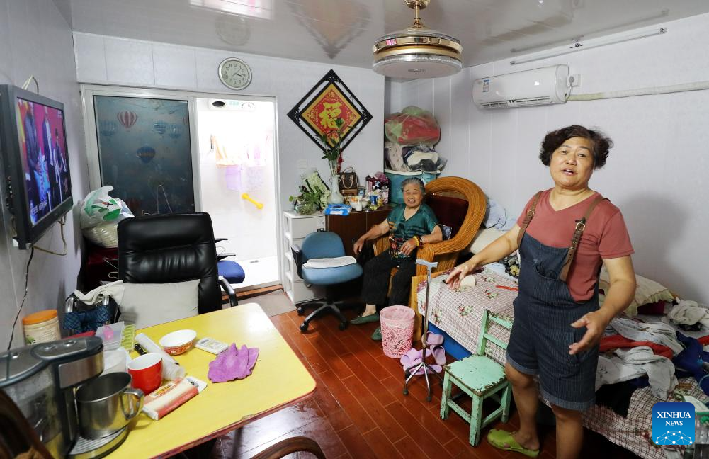 This file photo taken on July 18, 2019 shows two residents at their home where the toilet renovation has completed, in east China's Shanghai. (Xinhua/Fang Zhe)