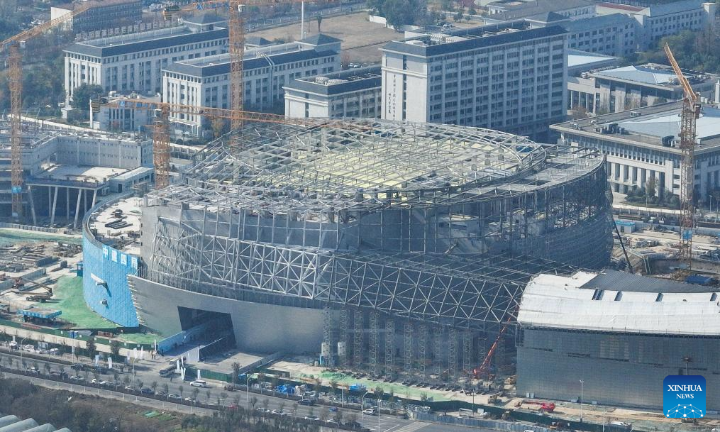 An aerial drone photo taken on Nov. 24, 2025 shows the construction site of the Burning Plasma Experimental Superconducting Tokamak (BEST) in Hefei, east China's Anhui Province. China on Monday launched an international science program focused on fusion burning plasma research in Hefei, capital of east China's Anhui Province, opening several major fusion research platforms to global scientists for joint scientific advancements. This international program, initiated by the Chinese Academy of Sciences' Institute of Plasma Physics, will provide global access to the country's multiple major fusion research platforms -- including the Burning Plasma Experimental Superconducting Tokamak (BEST) facility in Hefei. (Xinhua/Zhou Mu)