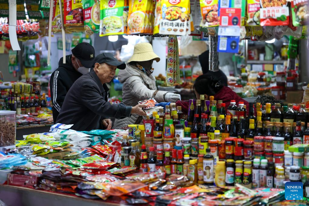 People shop for snacks at a stall at Sanshui grocery market in Hexi District of Tianjin, north China, Nov. 25, 2025. (Xinhua/Zhao Zishuo)