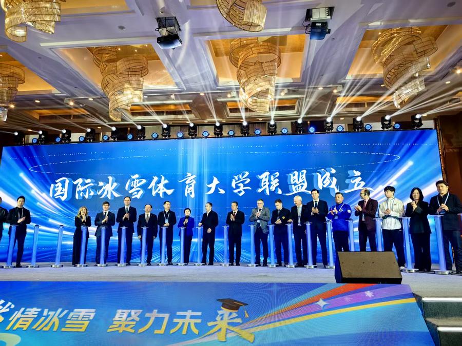 The International University Alliance of Winter Sports is officially launched in Harbin, the capital city of northeast China's Heilongjiang Province, on Nov. 27, 2026. (Xinhua)
