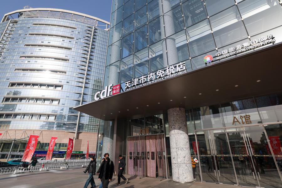 This photo taken on Nov. 28, 2025 shows an exterior view of a downtown duty-free shop in north China's Tianjin Municipality. (Xinhua/Sun Fanyue)
