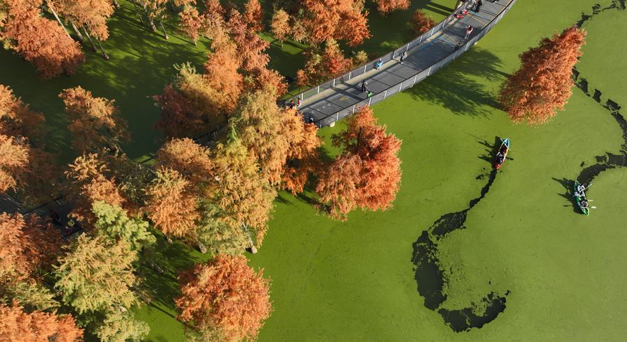 Waterlogged forest dressed in colorful "outfit" in E China's Hangzhou