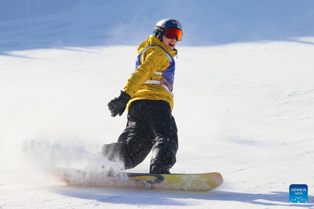 Su Yiming of China competes during the men's final of the FIS Snowboard Big Air World Cup 2026 at Secret Garden in Zhangjiakou, north China's Hebei Province, Nov. 29, 2025. (Xinhua/Lu Xingji)