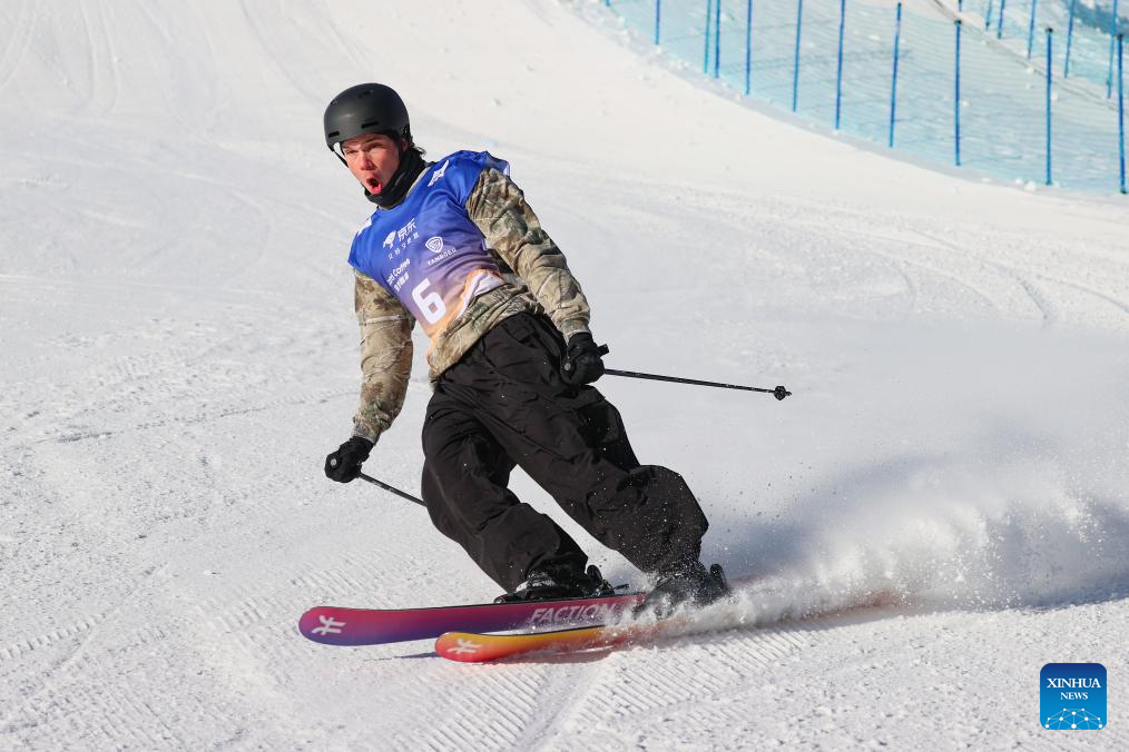 Dylan Deschamps of Canada reacts during the men's final of the FIS Freeski Big Air World Cup 2026 at Secret Garden in Zhangjiakou, north China's Hebei Province, Nov. 29, 2025. (Photo by Wu Diansen/Xinhua)