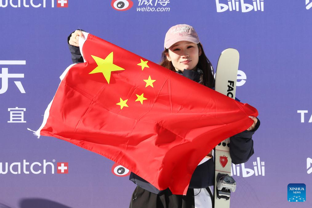 Bronze medalist Liu Mengting of China poses for photos during the awarding ceremony for the women's final of the FIS Freeski Big Air World Cup 2026 at Secret Garden in Zhangjiakou, north China's Hebei Province, Nov. 29, 2025. (Photo by Wu Diansen/Xinhua)